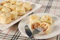 4 — Depois de assado retire do forno, coloque o molho branco em cima de cada rondelle e polvilhe o queijo parmesão ralado, volte ao forno para gratinar por mais 5 min