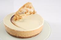 4 ― Depois da torta gelada, espalhe ganache na superfície e desenforme. Decore a torta com peças de caramelo e nozes.